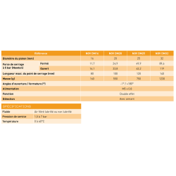 | Force serrage fermé | 49.9N à 5 bar |